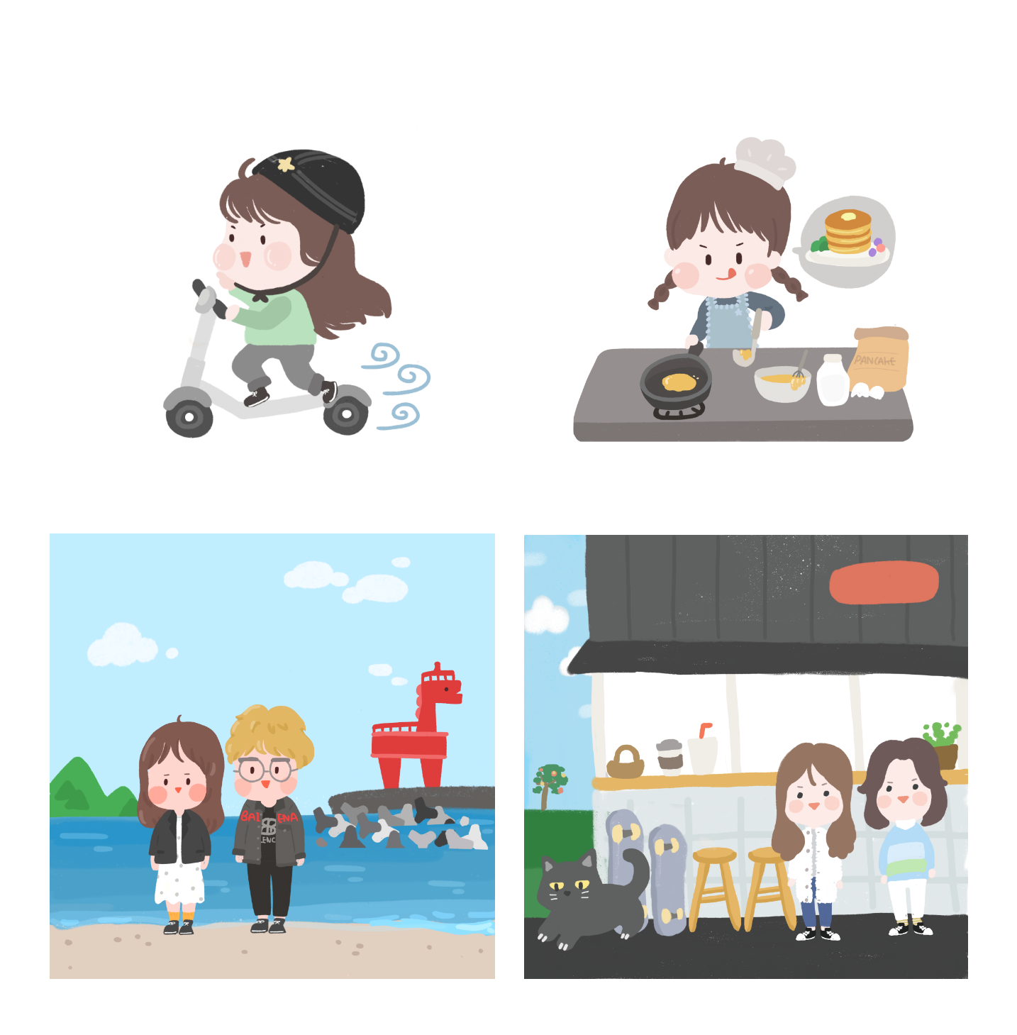 그 이후로 좋아하는 친구들을 그리는 취미를 가졌다. 연필과 지우개로 지우고 스케치하는 것을 반복하고, 짙은 검정 펜으로 선을따고, 색연필이나 마커로 색칠을 하곤 했다.