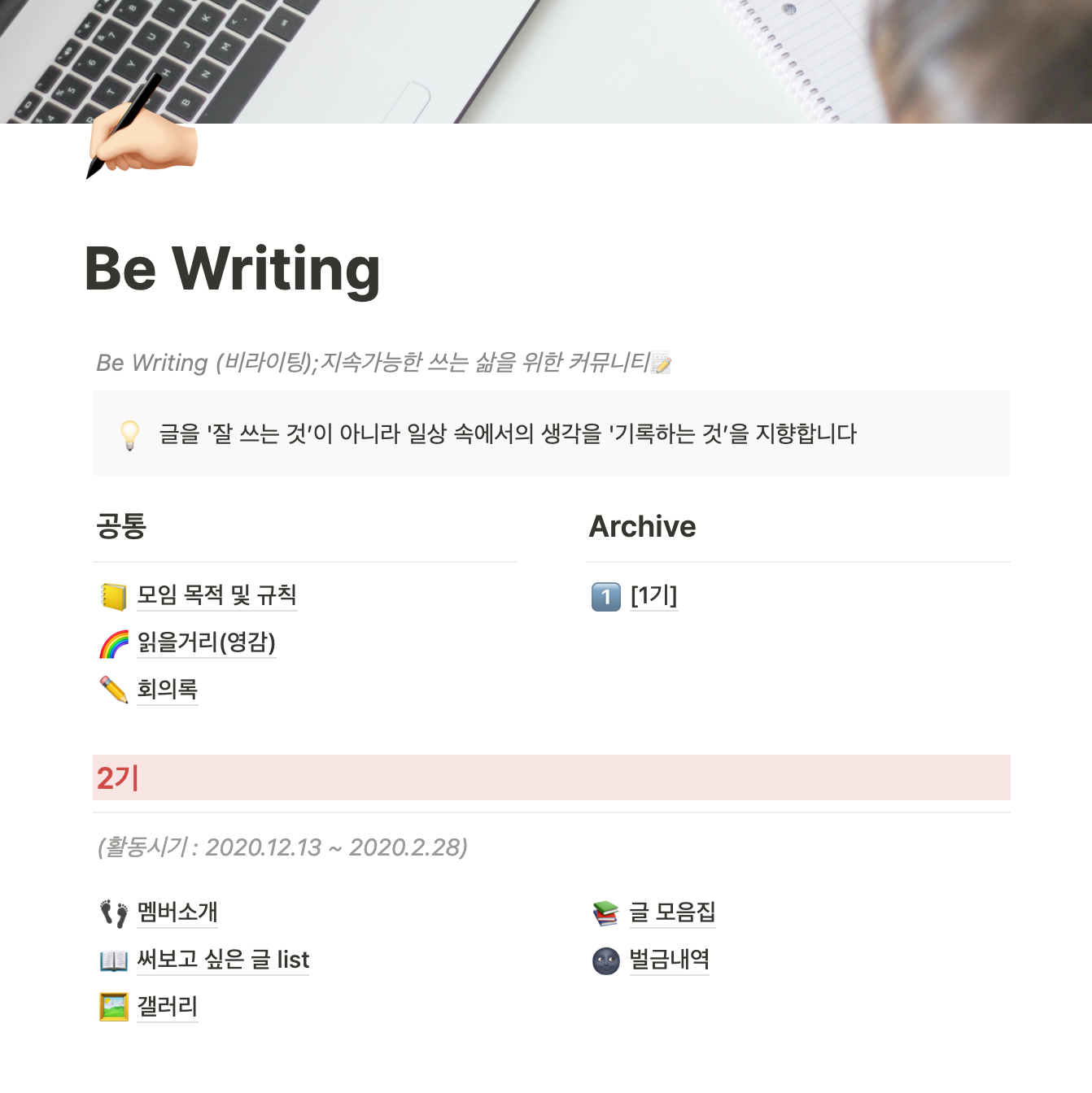 두 번째로 진행했던, 글쓰기 모임 '비라이팅(Be Writing)'