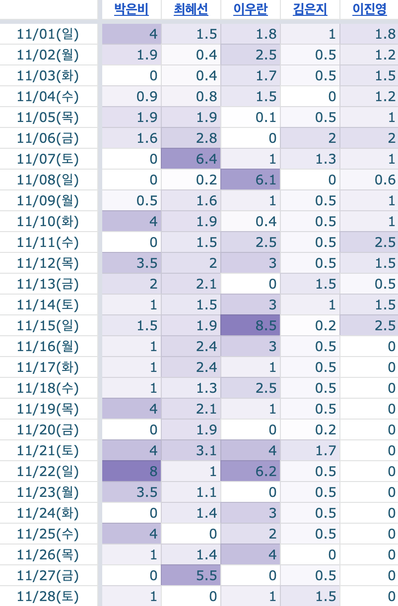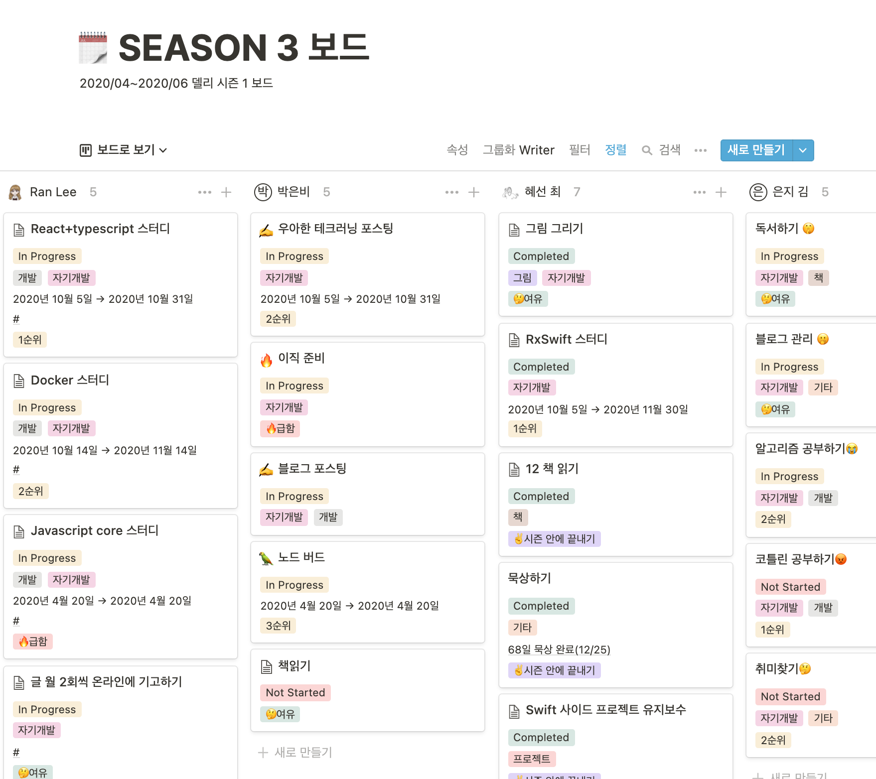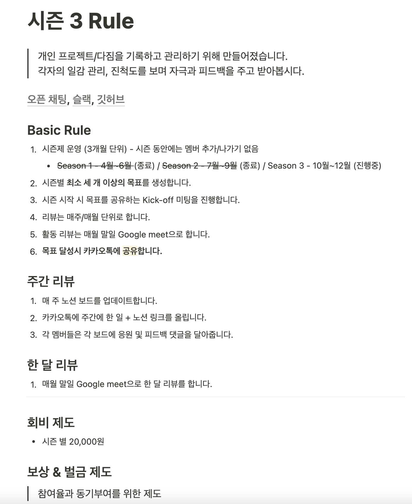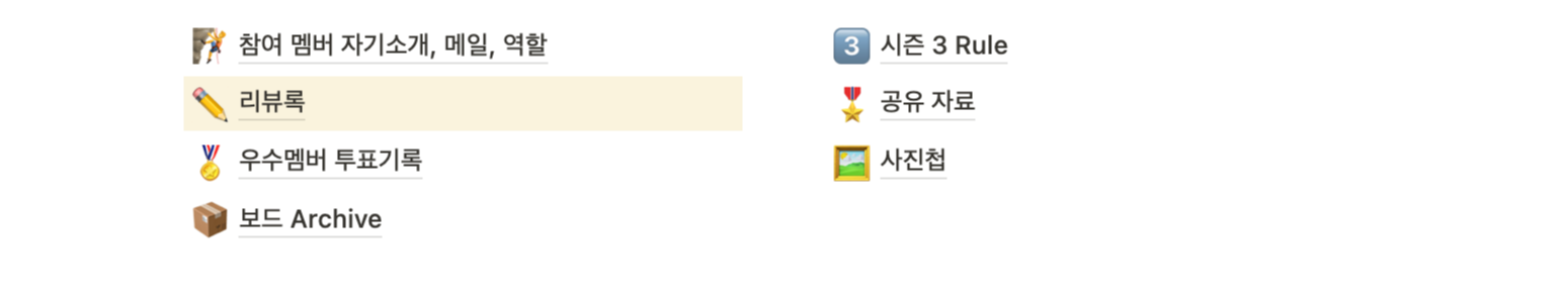 가볍게 시작해 본 모임이었지만 공유하고, 기록하고. 다양한 주제로 이야기를 나누고, 스스로 목표를 세워 진척도를 만들어나가는 습관을 만들 수 있었던 소중한 시간이었다.
